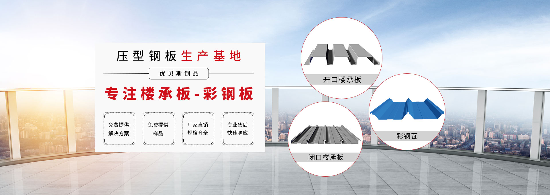 無錫優(yōu)貝斯鋼品有限公司主要生產(chǎn):樓承板,鋼承板,免澆筑樓承板,壓型鋼板,彩鋼板,閉口樓承板,開口樓承板,縮口樓承板價格優(yōu)惠及相關(guān)的鋼結(jié)構(gòu)輔材。 優(yōu)貝斯始終追蹤并處于鋼結(jié)構(gòu)建筑及其圍護(hù)系統(tǒng)技術(shù)的發(fā)展前沿,預(yù)制金屬屋墻板面和樓承板系統(tǒng)。優(yōu)貝斯擁有的技術(shù)和豐富實(shí)踐一直為客戶提供質(zhì)量的產(chǎn)品、鋼建筑系統(tǒng)解決方案和貼心的服務(wù)。
